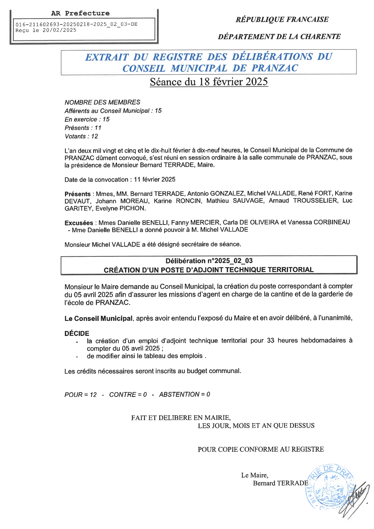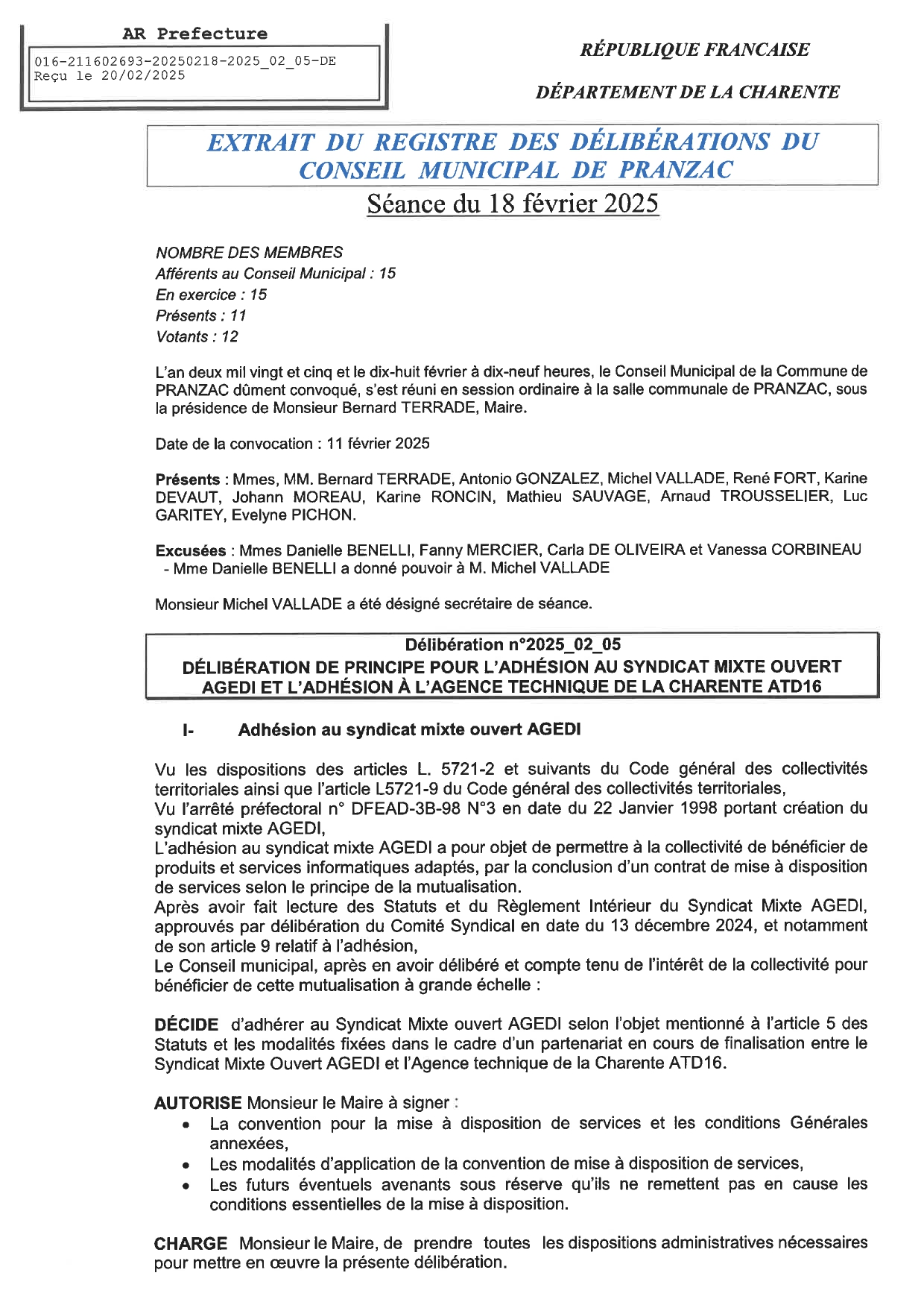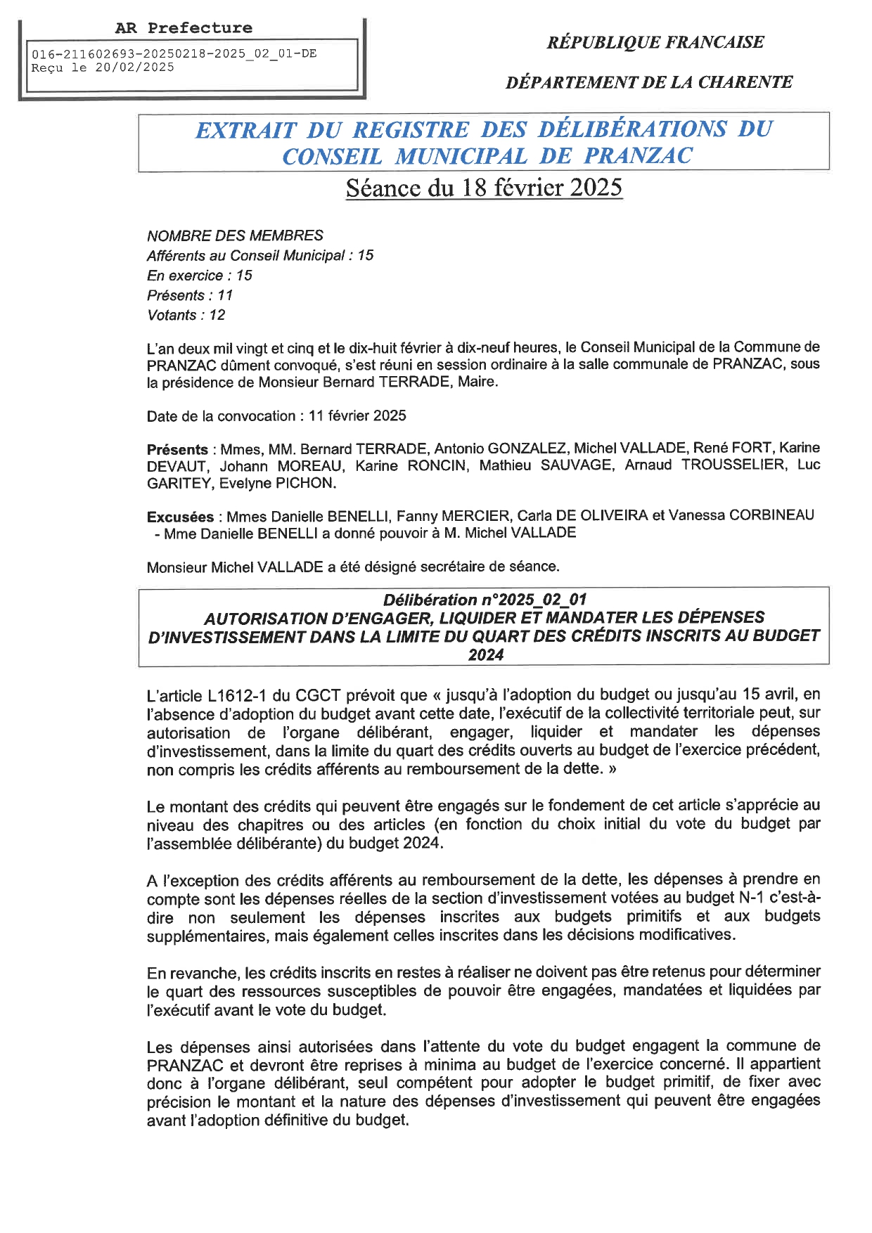 Délibération Conseil Municipal Séance du 18 février 2025