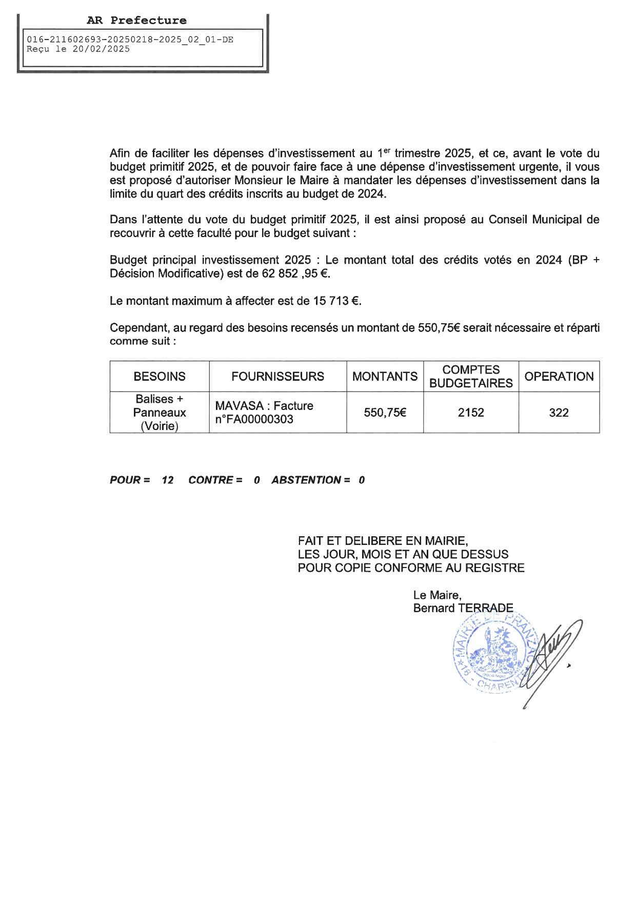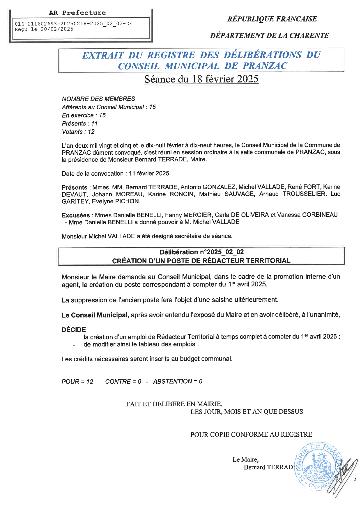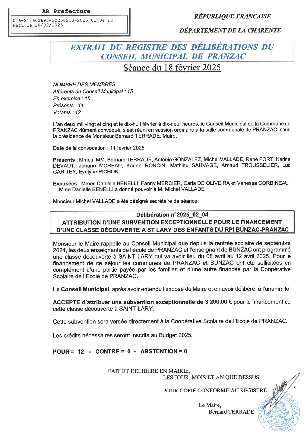 Délibération Conseil Municipal Séance du 18 février 2025