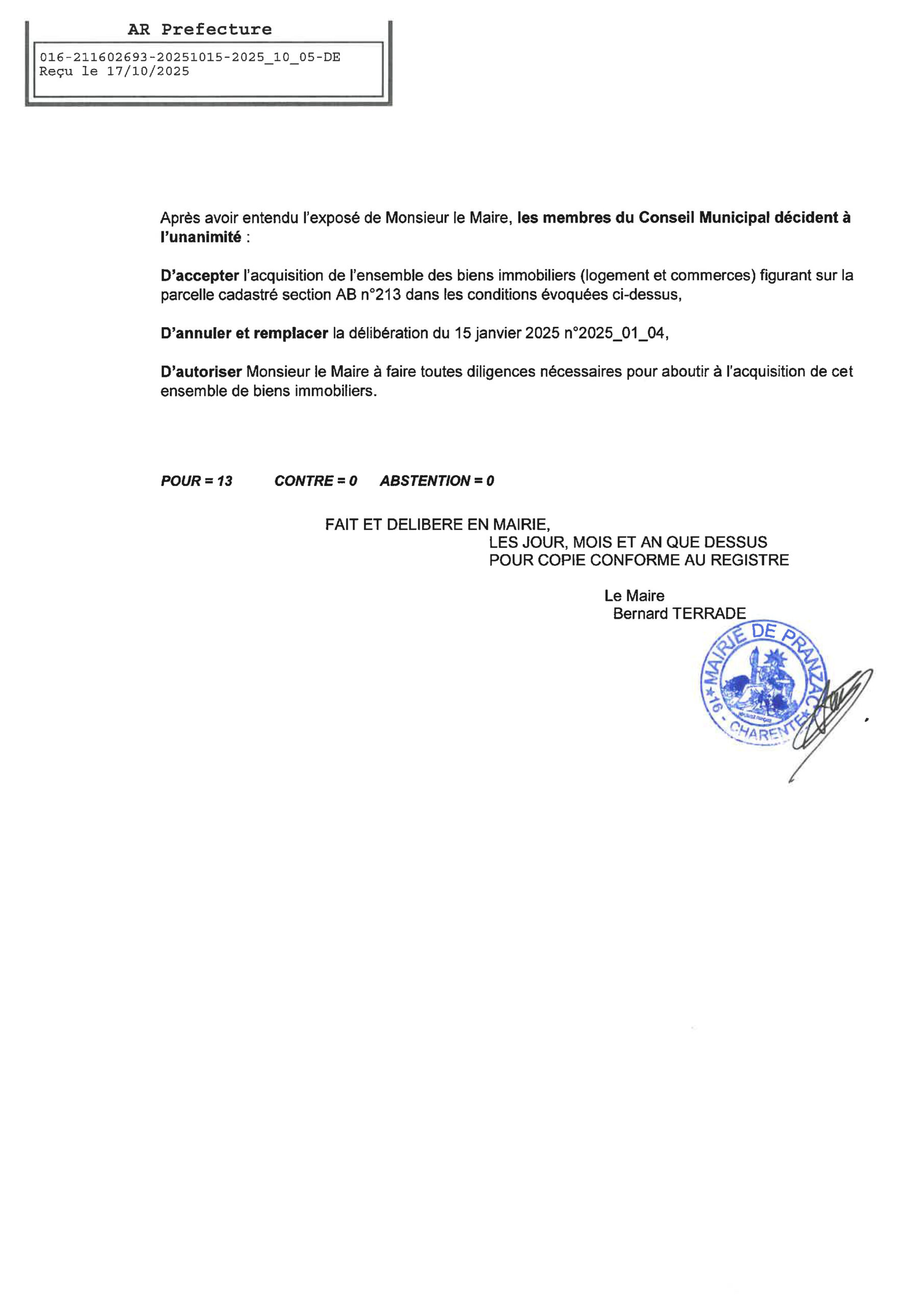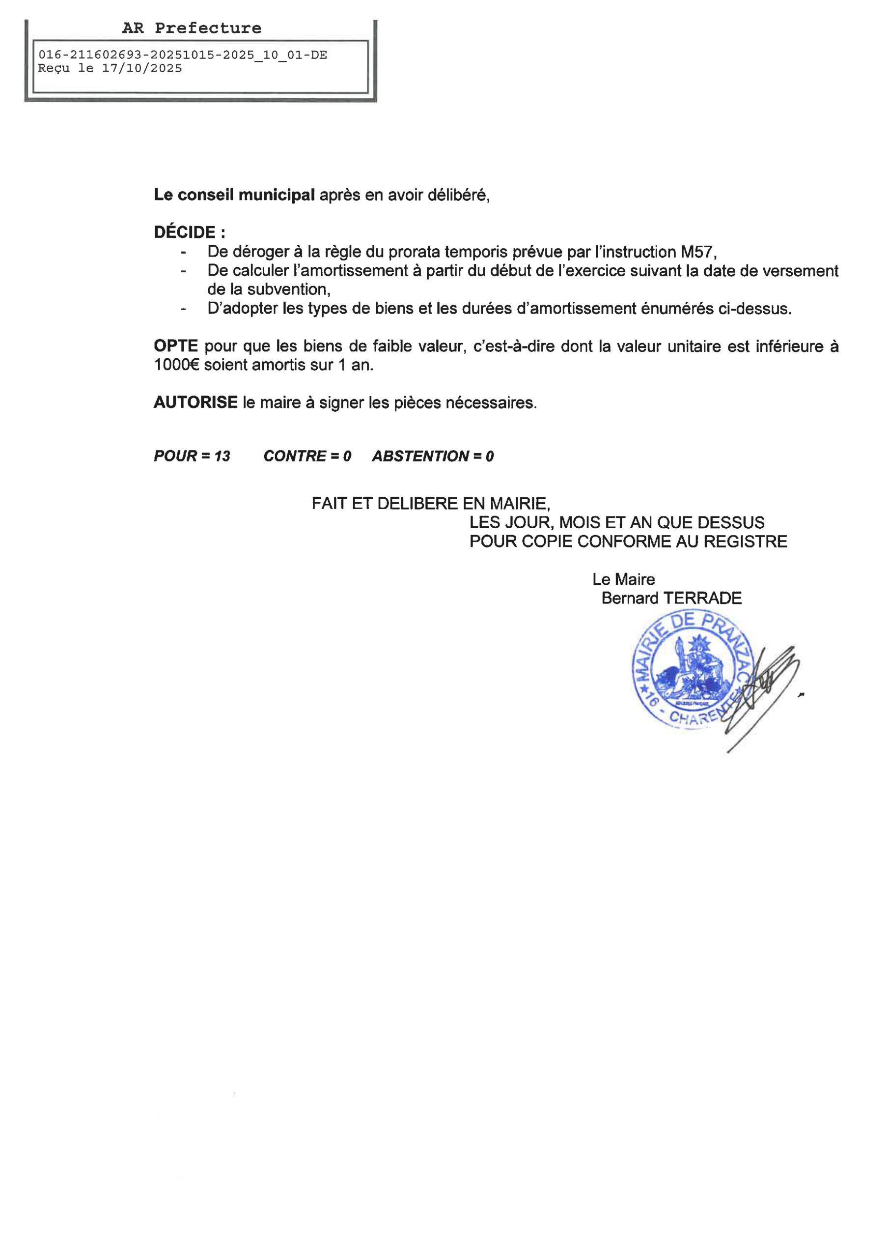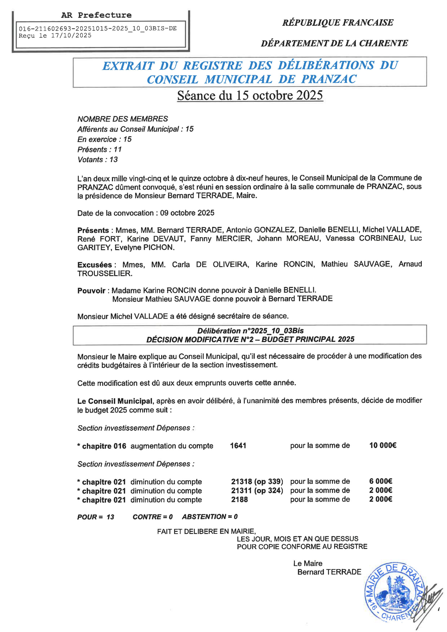 Délibération du conseil municipal de la séance du 15 octobre 2025