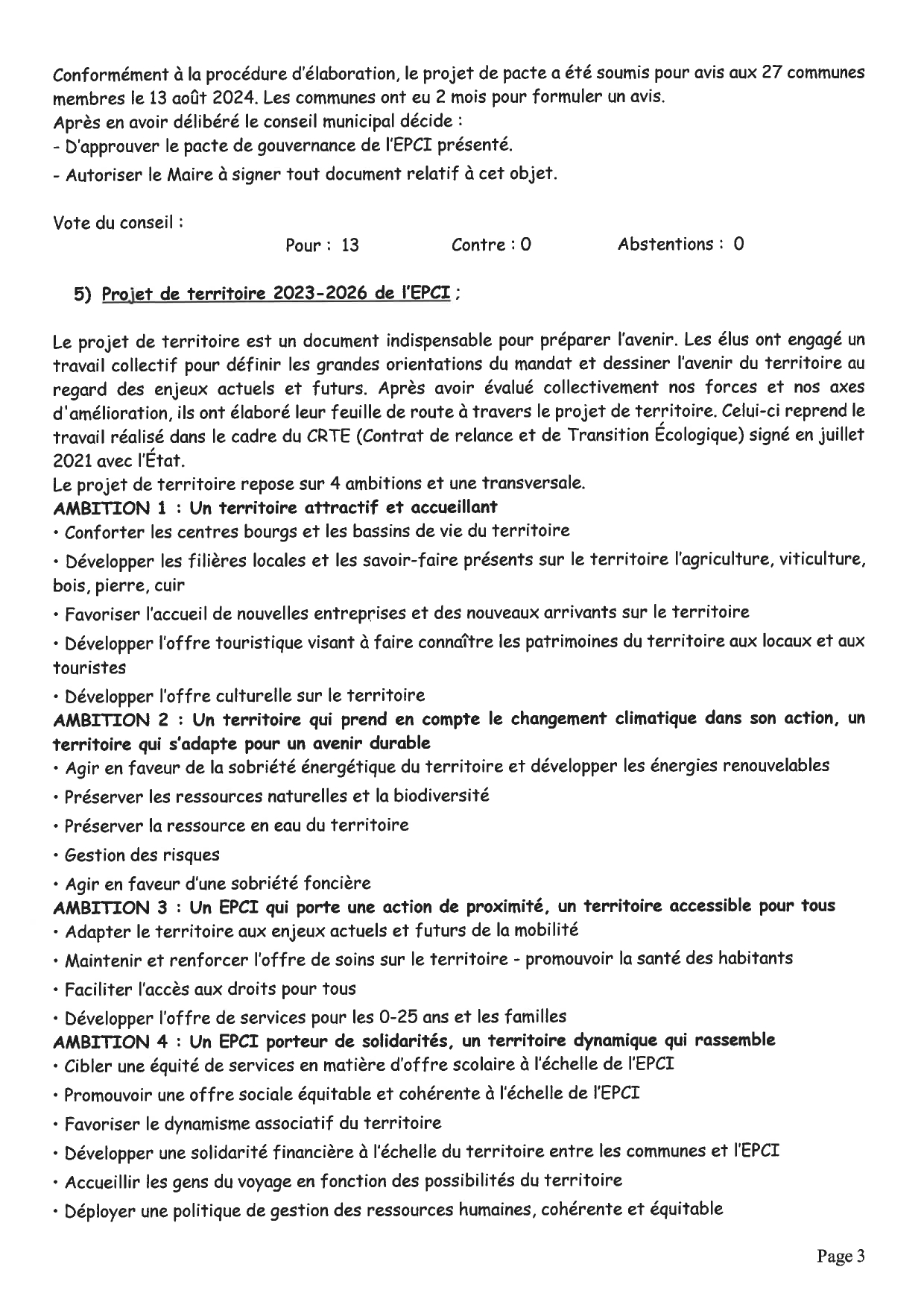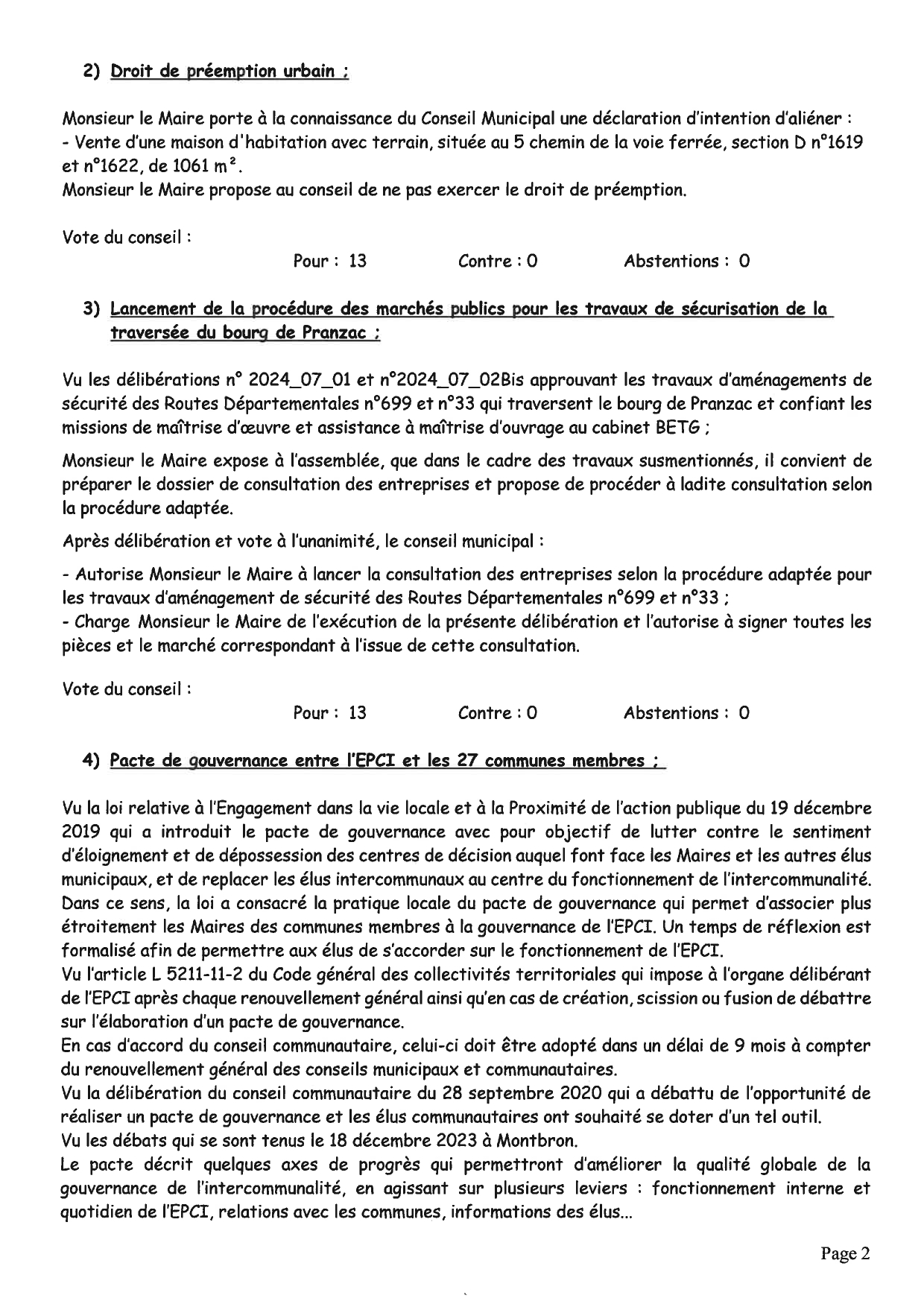 Découvrez les délibérations du dernier conseil municipal organisé le 03 septembre 2024 :