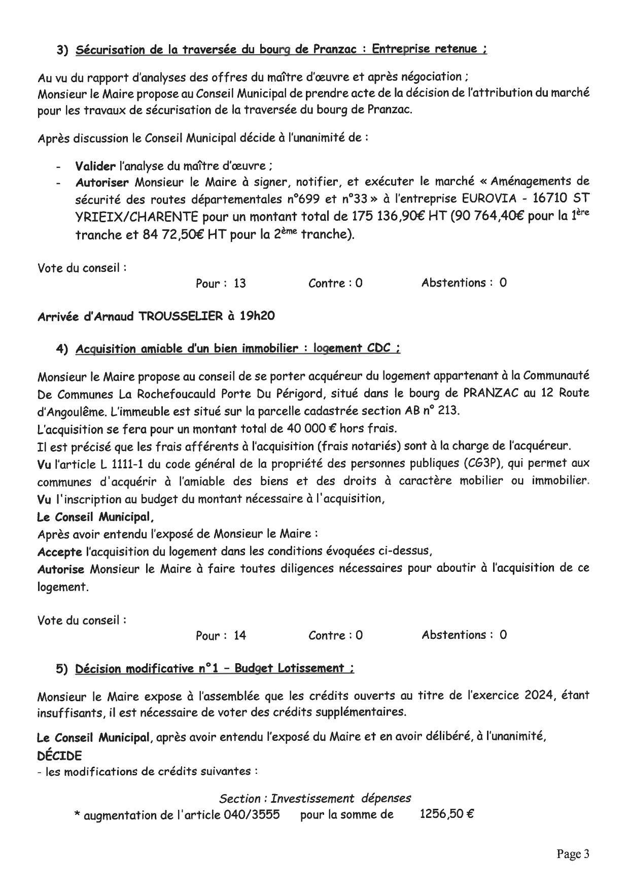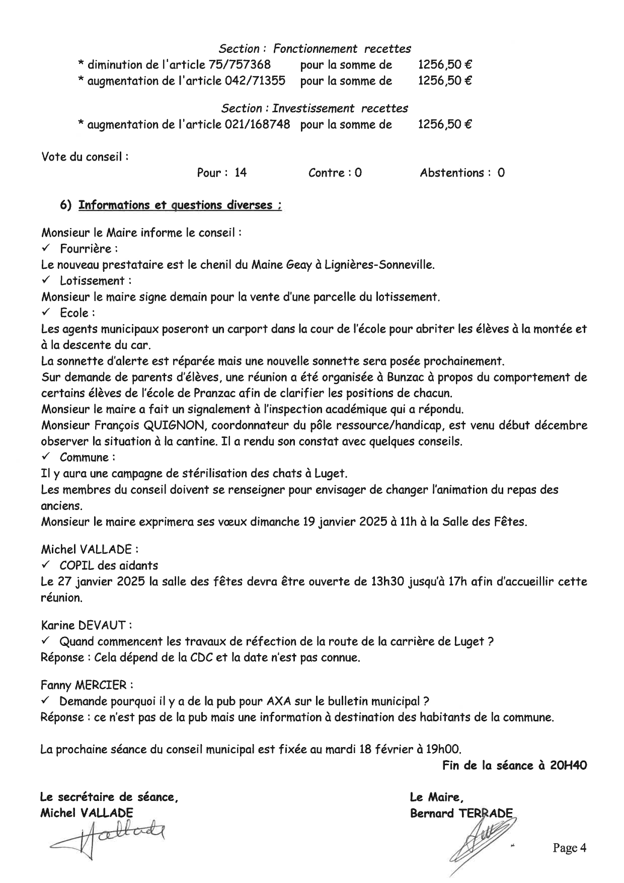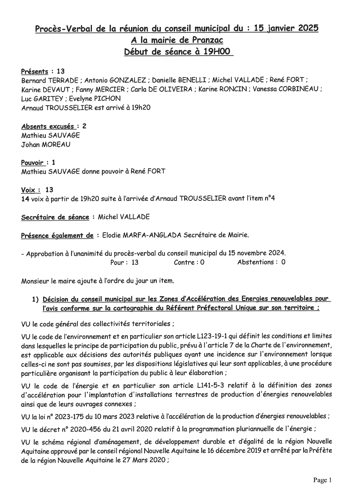 Procès-Verbal de la réunion du conseil municipal du 15 janvier 2025
